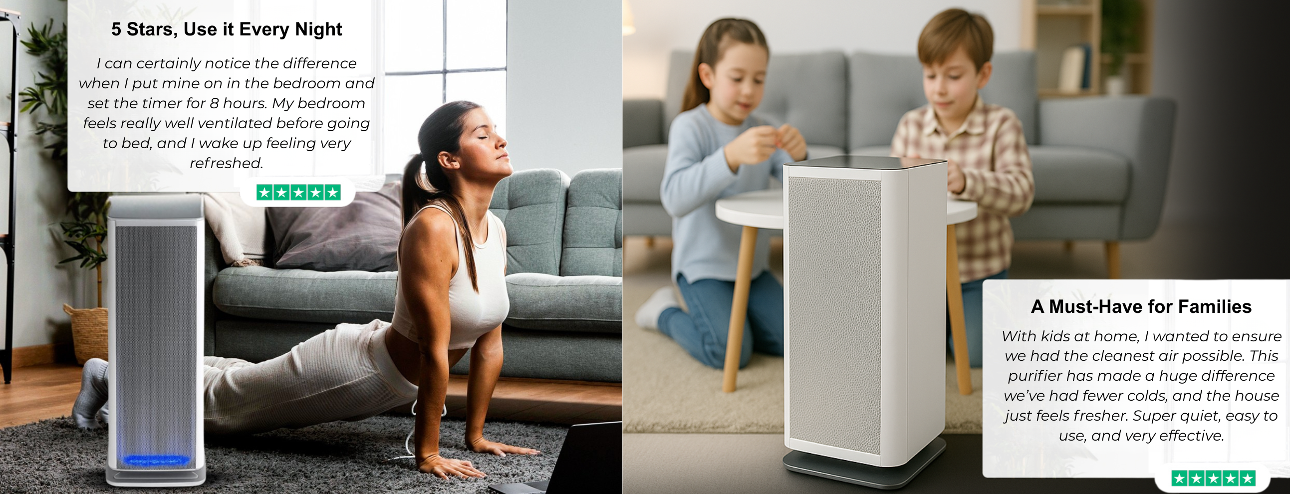 Love the modern look blends in with our living space, noticeably less dust and home smells crisp when we walk in